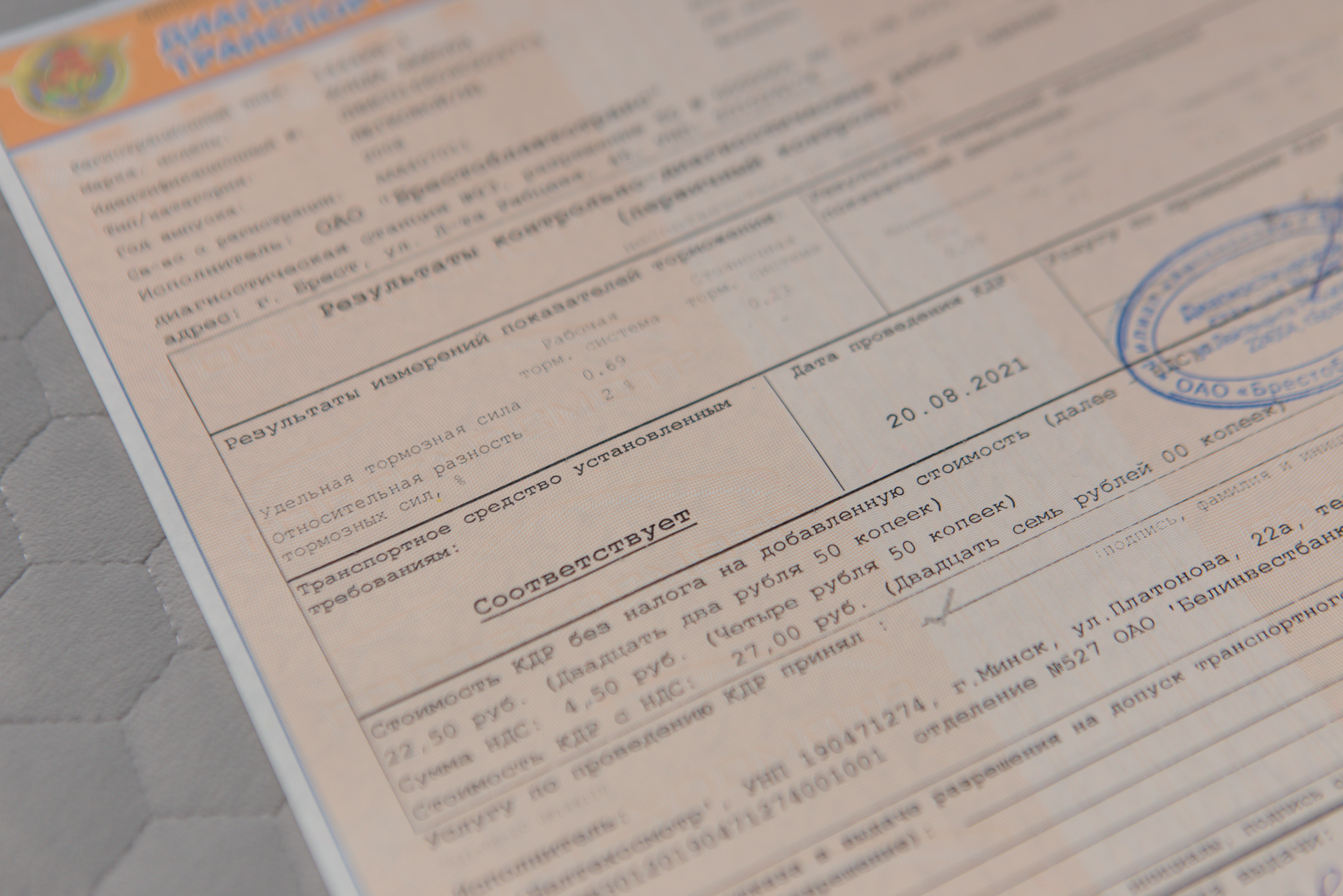 The vehicle successfully passed another vehicle inspection.