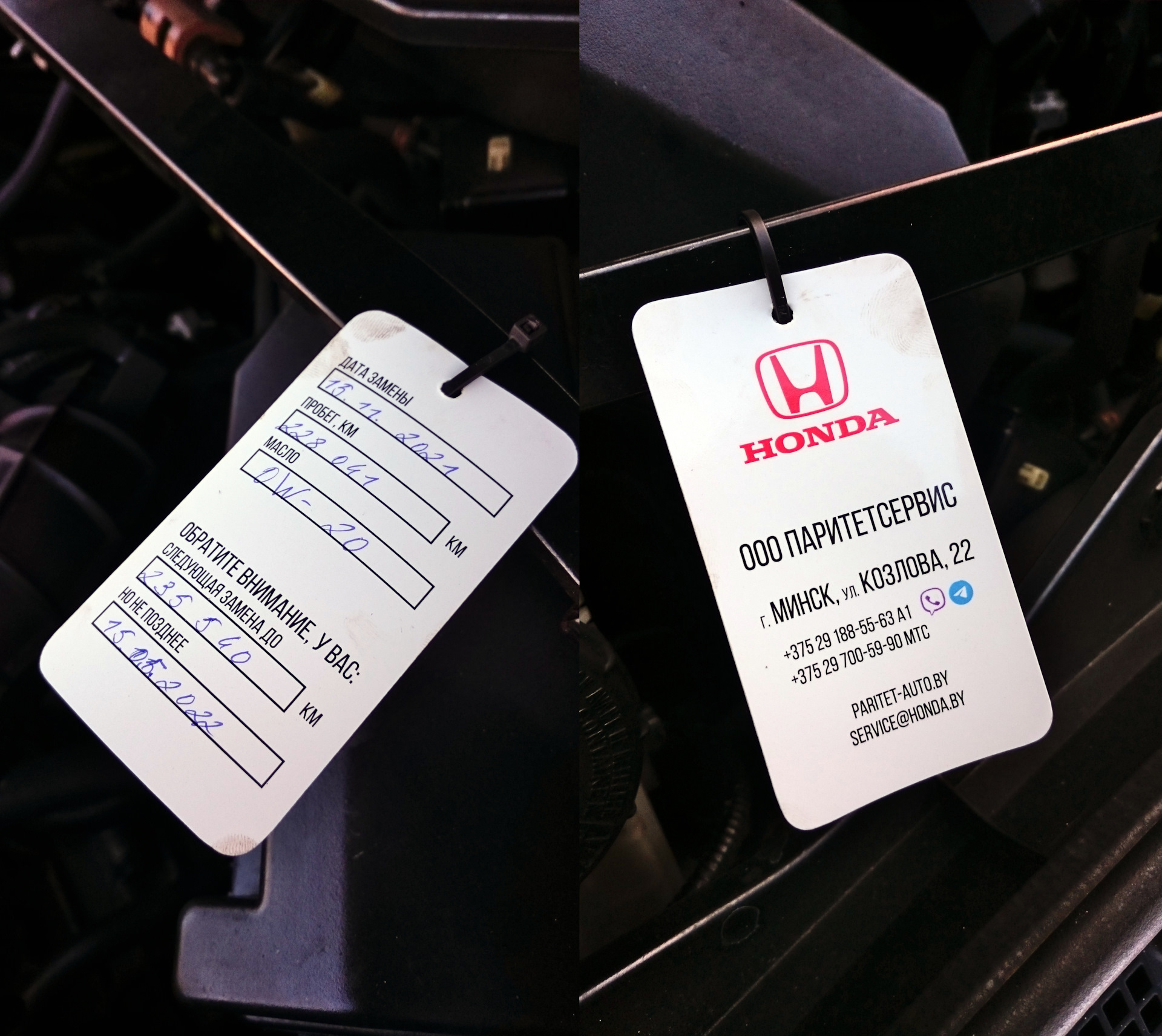 • Engine oil / Honda 0w20 (0821799977, 20L) / 4L / 45 USD