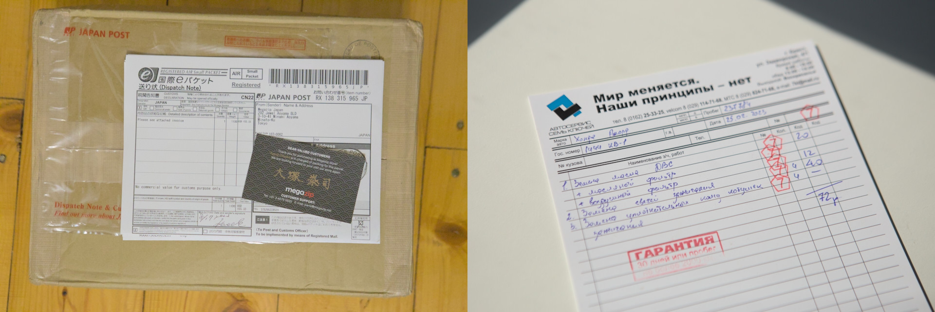 The engine oil was purchased from allegro.pl, while other parts came from megazip.net.