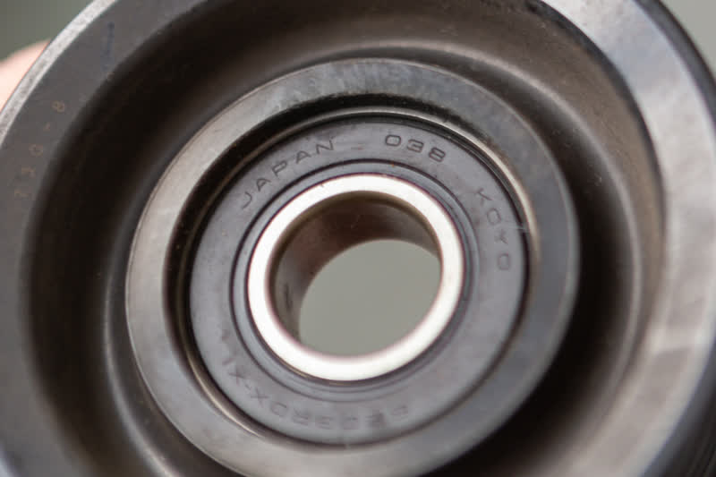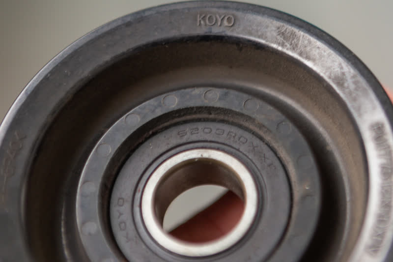 Concurrently, one of the pulleys, which had been emitting a metallic knocking sound, was replaced. The pulley had been purchased in March 2018, hence its dusty appearance.