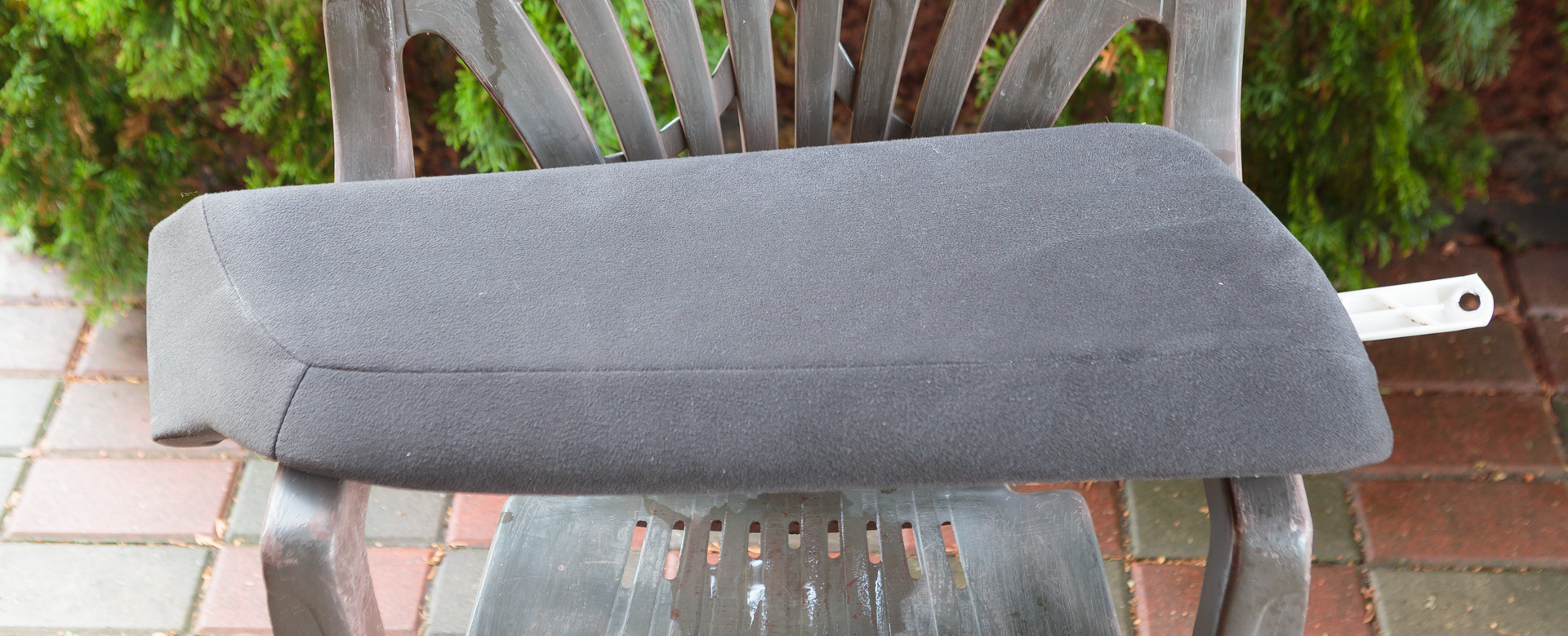 Maximum power (1400 W) was avoided to prevent overstretching the fabric and damaging the seams — a lesson learned from another car. In general, experience shows that lower power at a slower speed is better, giving time for the moisture from within the fabric’s pores to reach the surface.