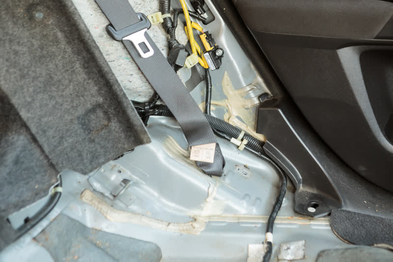 After cleaning the front seats, the water was slightly muddy. In contrast, it seems the rear row had hardly ever been cleaned.